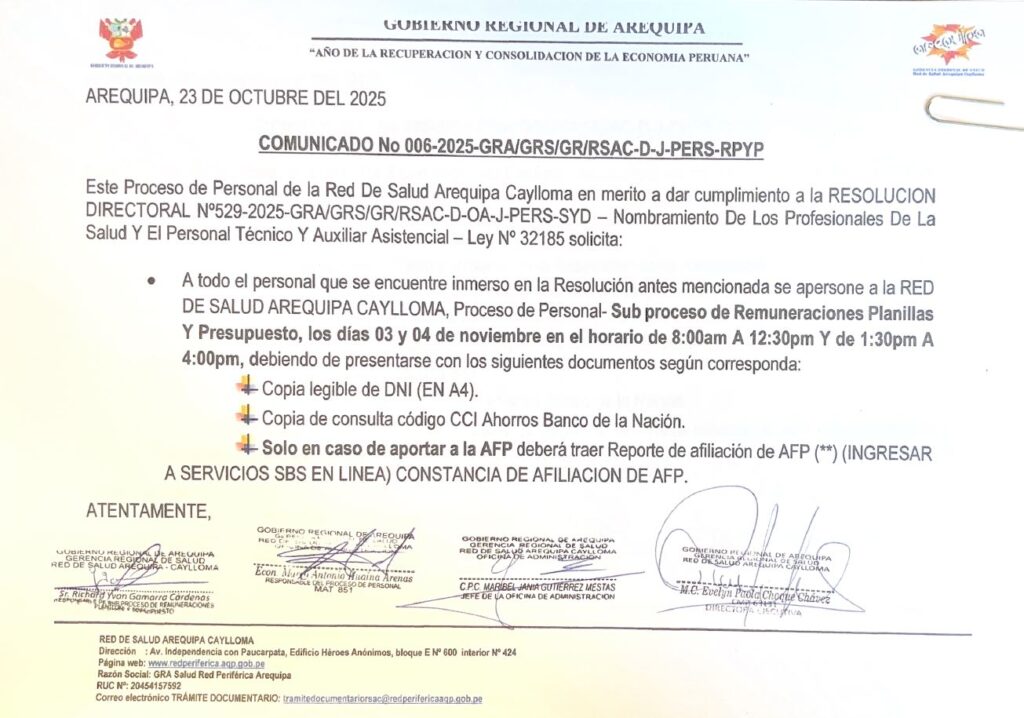 Comunicado N°005-2025- Nombramiento RD 462-2025 a personarse urgente a la RED