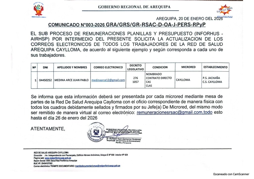COMUNICADO N°003-2026 GRA/GRS/GR-RSAC-D-OA-J-PERS-RPyP