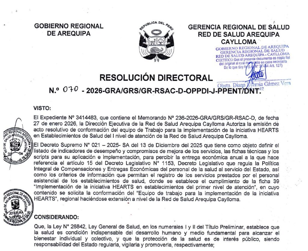 Resolución de conformación del equipo de implementación de la iniciativa HEARTS en la RSAC