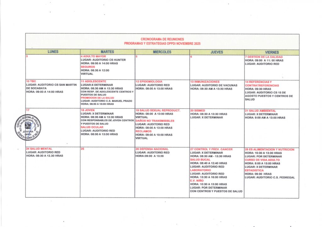 Cronograma de Reuniones Mes Noviembre 2025